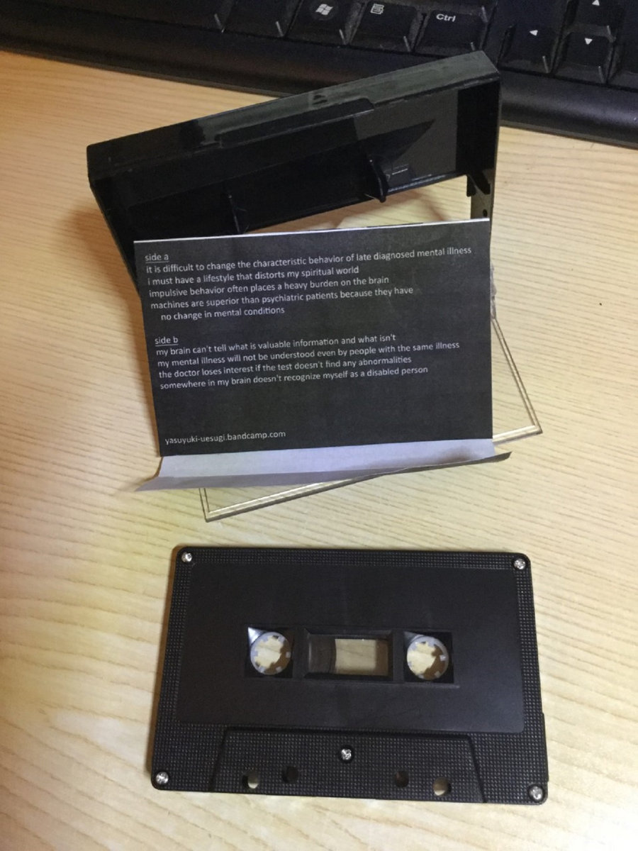 Black cassette with hand cut, hand folded, numbered j-card on watermarked paper.